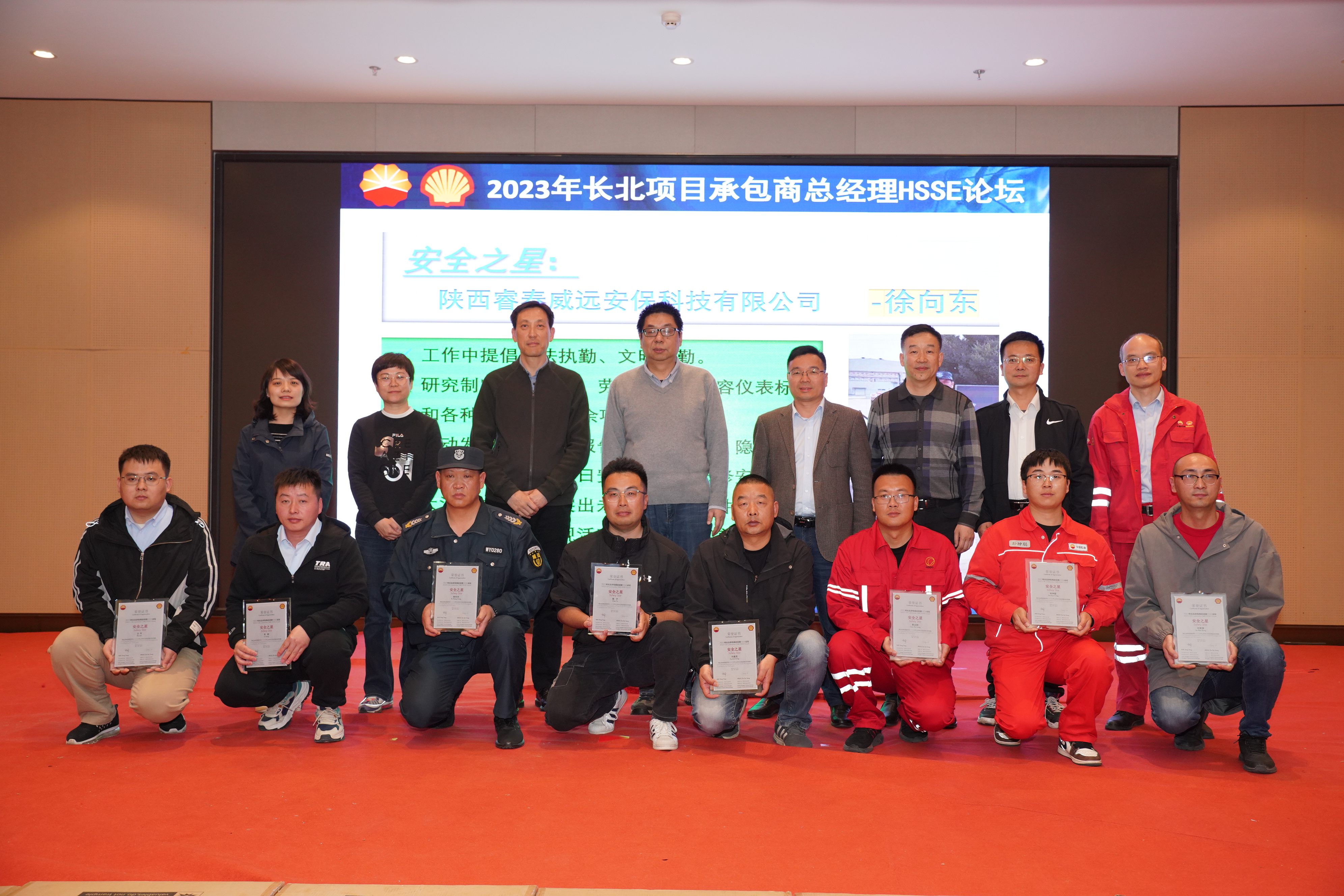 壳牌组织于2023年4月12日在陕西榆林市召开总经理HSSE论坛,会上中油石化建设工程有限公司被评为”优秀承包商“,郭志刚被评为”安全之星“。